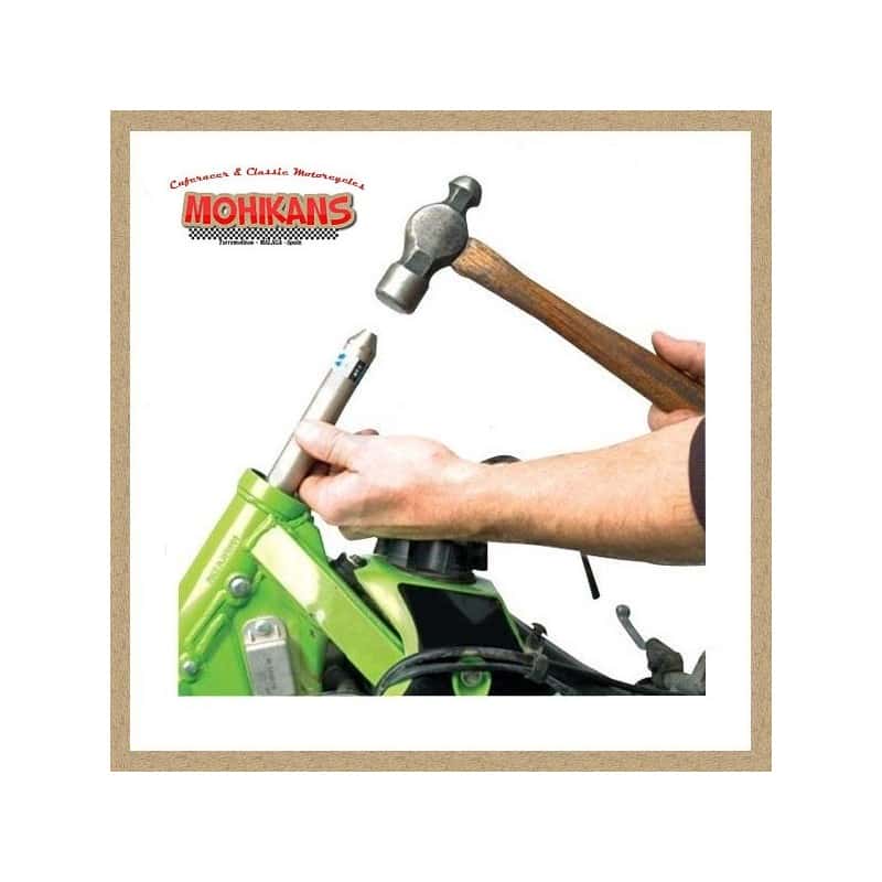 Rodamiento superior se introduce el punzón por la parte inferior de la pipa de dirección golpenado de abajo hacia arriba